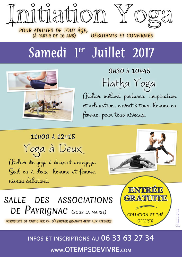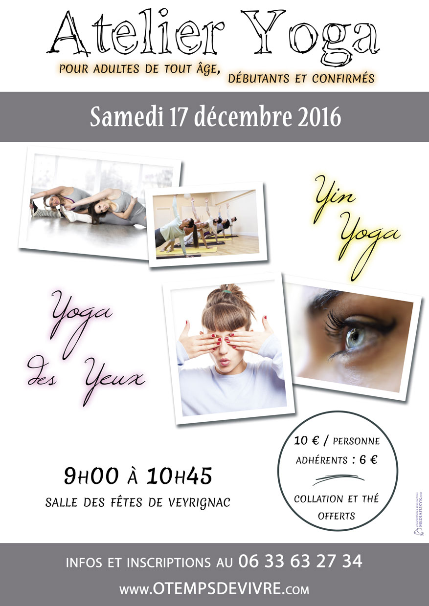 – 12/10/2025 de 9h30 à 12h30 (Tous niveaux) : Les Bases du Yoga – Maitriser les postures de base, connaitre les bienfaits, les différents types de yoga, le yoga dans les gestes du quotidien, la salutation au soleil – 30 €/pers (+5€ non adhérents)