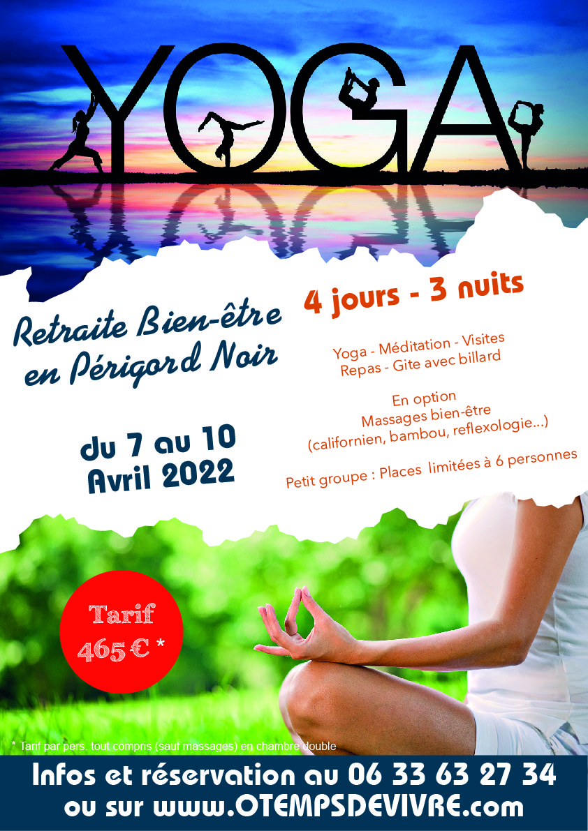 – 26/04/2026 de 9h30 à 12h00 : Yoga”Après Pâques” Préparation de sa silhouette avant les beaux jours.(Tous niveaux) 25€/pers* (+5€ non adhérents)